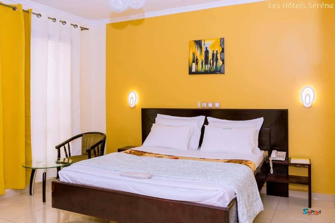 L’Hôtel Séréna Palace est un hôtel 3 étoiles situé en plein cœur de la capitale économique du Cameroun Douala, à 10 minutes de l'aéroport international, à 5 minutes du Port Autonome, de la Cathédrale et des principaux commerces de la ville, l'hôtel Séréna Bali vous accueille dans un cadre chaleureux où règnent sérénité et convivialité, distillées par un personnel sympathique qui vous offre une boisson d'accueil dès votre arrivée à la réception. L’Hôtel Séréna Palace Akwa-Nord quant à lui est un hôtel 2 étoiles situé sur la route d'Akwa-Nord, dans un lieu calme, sur la route principale qui mène au grand quartier Bonamoussadi. Pour un total de 100 Chambres, nous offrons à nos clients des services 4 étoiles. Vous retrouvez chez nous : Bar, Restaurant, Salon de Coiffure et de Massage, Internet WIFI haut débit.