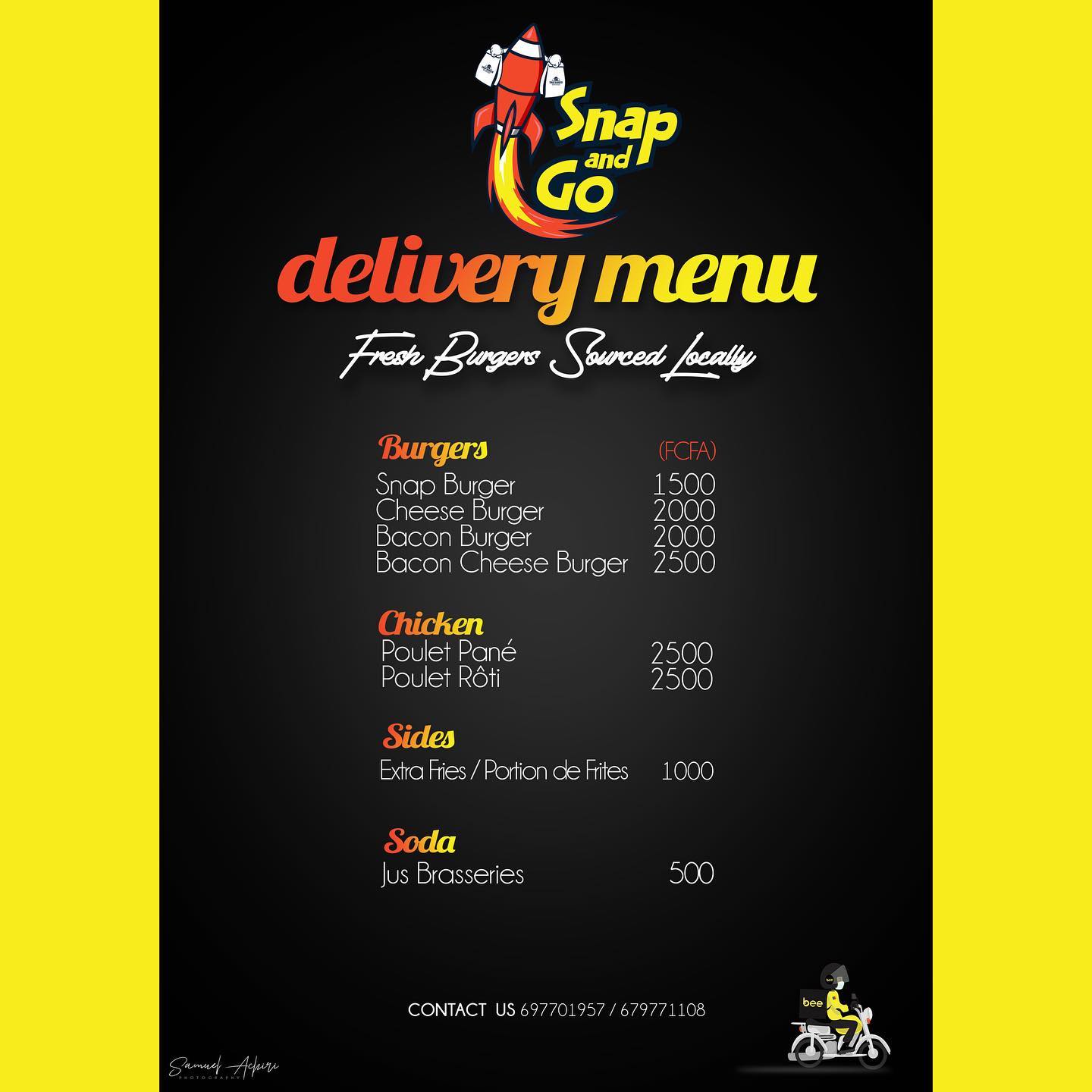 Snap Burger est un restaurant fast food à Yaoundé qui propose pour vous et votre famille des plateaux gourmands à déguster sur place ou emporter. Chaque jour c'est toute une équipe motivée et dévouée qui s'active afin de vous apporter à chaque service un niveau de qualité assez élevé et une ouverture à toute épreuve face aux critiques et aux conseils. Nous vous offrons de déguster des grillades, des cocktails, barbecue, hamburgers, café et des glaces.