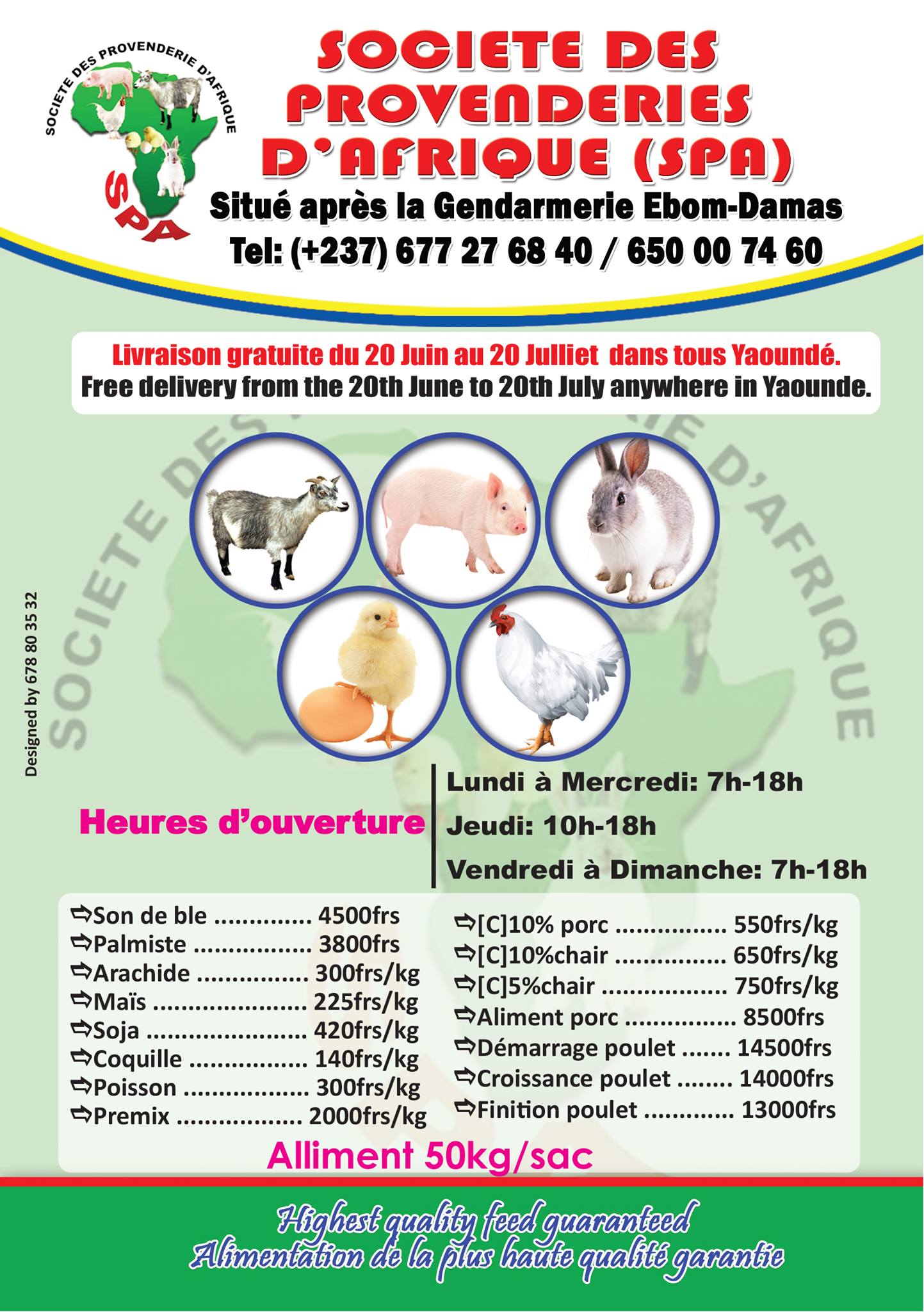 La Société Provenderie d'Afrique est un groupe de techniciens avec de nombreuses années d'expérience dans la meunerie et les problèmes de santé animale. Nous offrons des conseils de classe mondiale à nos clients, produisons des aliments bien calibrés, fournissons des poussins et fournissons une bonne race de porcelets. Des aliments de qualité supérieure à des prix modérés.
