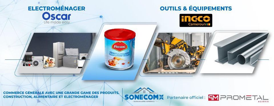 La Société de Négoce et de Commerce (SONECOMX) est un leader en commerce général avec une large gamme de produits : Matériaux de construction, produits alimentaire, électroménagers, objets de décoration. SONECOMX compte 07 agences répandu dans les villes de Douala, Yaoundé, Bertoua et Ngaoundéré.