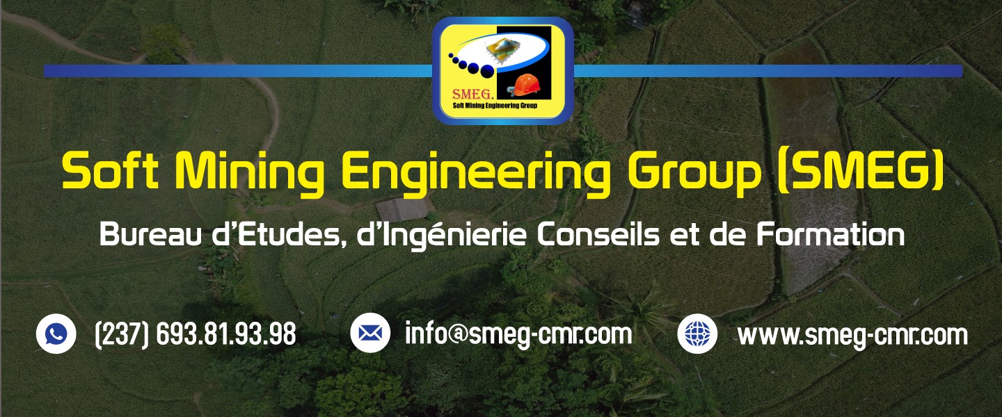 Soft Mining Engineering Group (SMEG) est un bureau d'étude qui offre des prestations de qualité dans les domaines de la Cartographie 2D/3D, les SIG, la Télédétection, la Prospection et l’Exploitation Minière, l’Hydrologie, l’Hydrogéologie, la Topographie, la Géotechnique, les BTP, l’Assistance technique, l’application de la réglementation, la Gestion de l’environnement, l’Analyse des risques, la Maintenance Industrielle, le Montage et le Suivi des projets, le conseil et la formation. Le SMEG est une association qui traite des problèmes relatifs au secteur minier et étend son champ d’actions aux secteurs y afférents : agriculture, élevage, forêt, environnement, éducation, insertion socio-professionnelle et concourt à l’atteinte des Objectifs du Millénaire pour le Développement des Nations Unies (OMD).