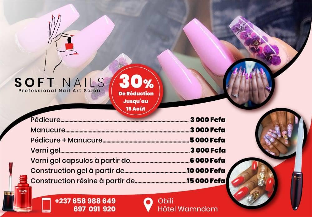 Situé en plein cœur de la capitale politique, Soft Nails est un espace dédié à la beauté des ongles. Excellent Bar à ongle, cet espace réservé aux filles désireuses de donner à leurs ongles une beauté originale et particulière, a mis sur pieds des cocktails assez variés de soins, afin de permettre à chaque potentielle cliente d’y trouver compte. Vous trouverez sur la carte de prix, des prestations assez variées et des services des plus simples aux plus complexes.