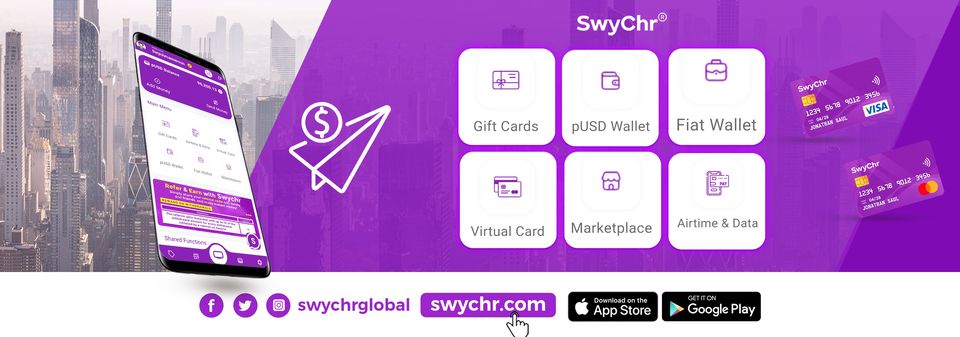 SWYCHR est une fintech camerounaise. Nous collaborons avec des partenaires internationaux pour permettre des transactions rapides, sans effort et rentables, en veillant à ce que votre porte-monnaie électronique soit connecté de manière transparente à un monde de possibilités financières. SwyChr permet à toute personne, partout dans le monde, disposant d'un smartphone et d'une connexion internet, d'envoyer ou de recevoir des fonds, de payer ou d'être payé instantanément dans le cadre de transactions libellées en USD en s'appuyant sur la technologie blockchain.