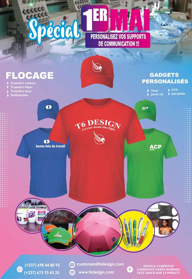 T6Design est une maison de communication qui développe des contenus multimédia et print basée à Douala, Bonamoussadi. Notre société a différents départements qui sont : un studio de photographie, un département audiovisuel, un studio de maquillage, un atelier de sérigraphie, broderie et impression, équipés d'outils technologiques de pointe et une équipe de professionnels qualifiés toujours prêts à développer un contenu audiovisuel de niveau international pour nos clients.