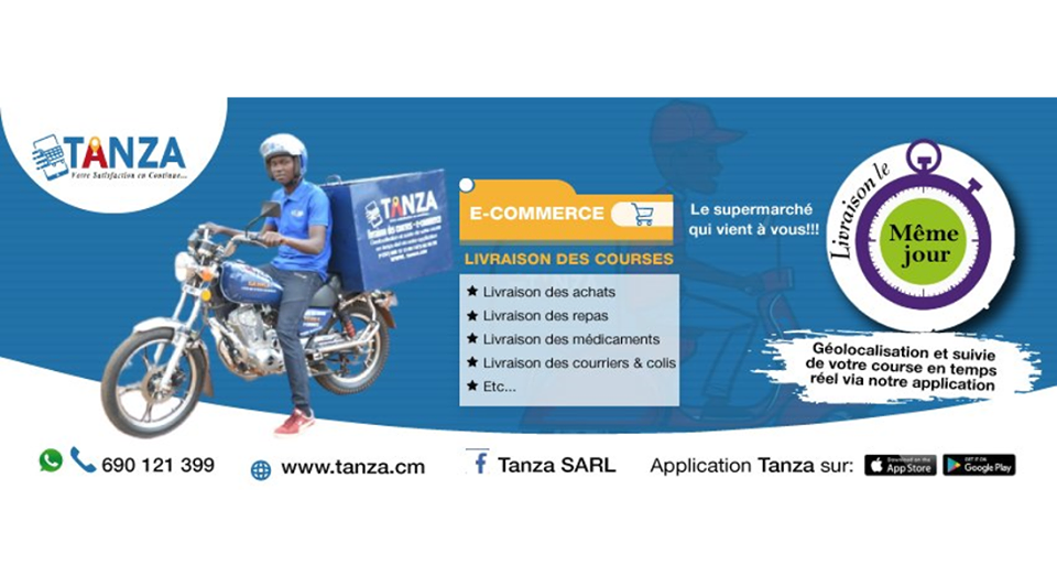 Tanza Sarl est une Start Up crée par des jeunes entrepreneurs camerounais avec une plateforme en ligne de livraison de courses où vous pouvez acheter les produits à Yaoundé, Douala, Bafoussam et de vous faire livrer à domicile en 90Min. Qu'il s'agisse d’aller chercher urgemment des médicaments à la pharmacie, ou d’aller acheter des produits de votre choix dans les magasins, ou encore d’aller livrer un colis urgent a un client ou de vous livrer un repas chauds, Tanza vous livre tout ceci rapidement et efficacement sans que vous ayez besoin de sortir de la maison ou du bureau. En plus de cela Tanza Sarl offre à ses utilisateurs (Entreprises et Particuliers) la possibilité de suivre l’évolution de leurs courses instantanément grâce au system de GPS intégré à son Application mobile nommée Tanza. En outre Tanza offre aux personnes la possibilité de gagner un revenu flexible à leur propre capacité dans leur Temps libre.