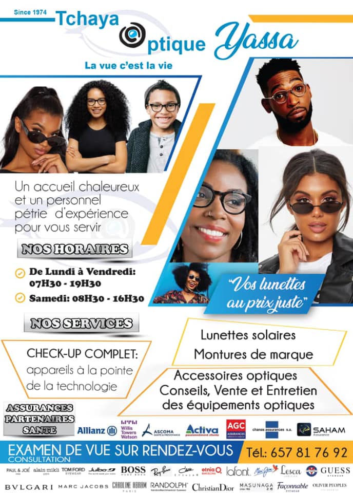Tchaya Optique est un ensemble de cabinet optique médicale existant depuis 1974 et basé dans les villes de Douala et Yaoundé. Tchaya Optique propose une large gamme de monture variée aux marques internationale, dont Tom Ford, Sun Valley, Dior, Kiss, montures pour femmes, hommes, enfants, lunettes de soleil et accessoires optiques. Depuis 45 ans nous mettons notre professionnalisme et notre expérience au service de votre vue.