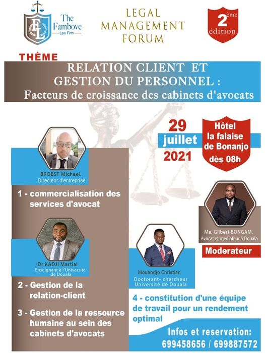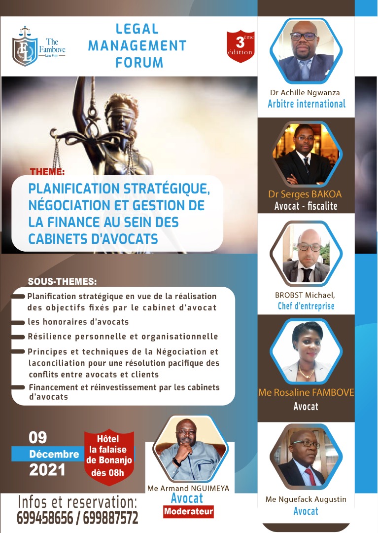 Dans un contexte marqué par une quête permanente et effrénée de la justice par les justiciables, une recherche accentuée du profit de la part des investisseurs, une concurrence redoutable ; les intérêts des uns peuvent se heurter à ceux des autres faisant ainsi naître un climat de conflit d’où la raison d’être du cabinet d’avocat The Fambove Law Firm. The Fambove Law Firm est un cabinet d’avocats et de juristes, bilingue, basé au Cameroun-Douala offrant un accompagnement rigoureux, méticuleux et des conseils précis qui cadrent avec les besoins et les attentes des clients locaux et internationaux. En outre, il offre également aux entreprises de différents secteurs (financiers, bancaires, assurances, pétrolières, de transport…) ainsi qu’aux particuliers des services et une assistance technique à compétences multiformes, variables, accessibles à tous par tous et innovants.
