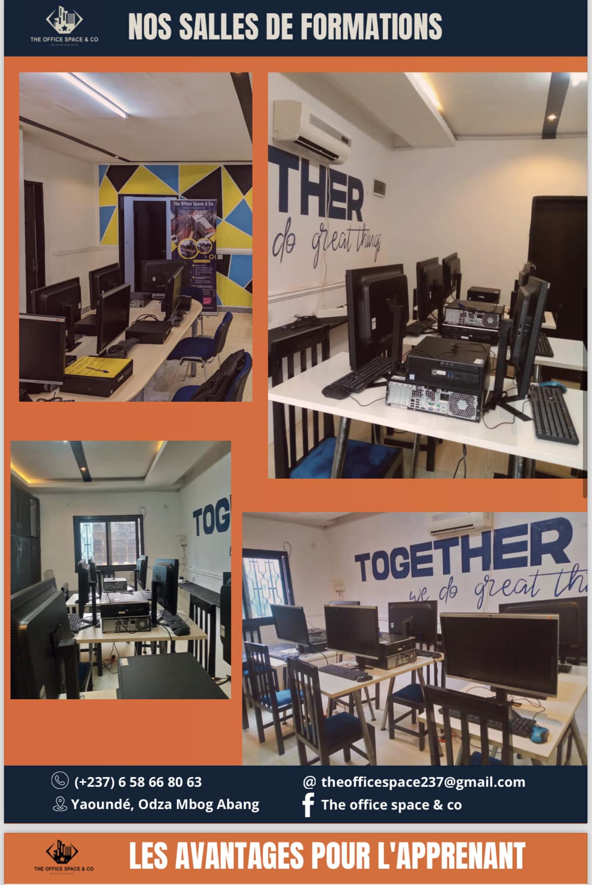 The Office Space & Co est une société proposant plusieurs services tels que la location d'espaces de coworking, la domiciliation de start-ups et d'entreprises. Nous proposons également des formations pratiques dans les domaines des NTIC (Sécurité informatique, Développement Web, Marketing digital, Gestion de projets). The Office Space & Co est situé à Yaoundé au quartier Odza.