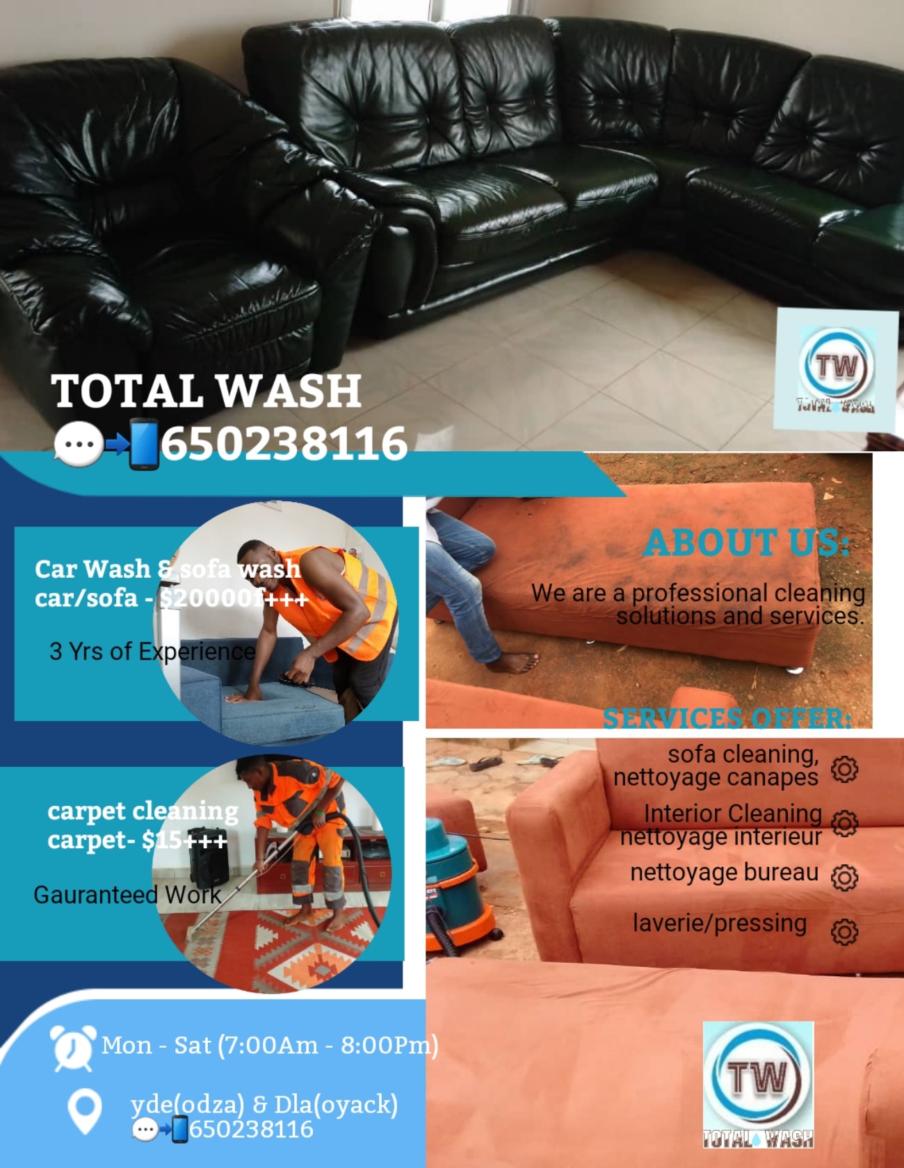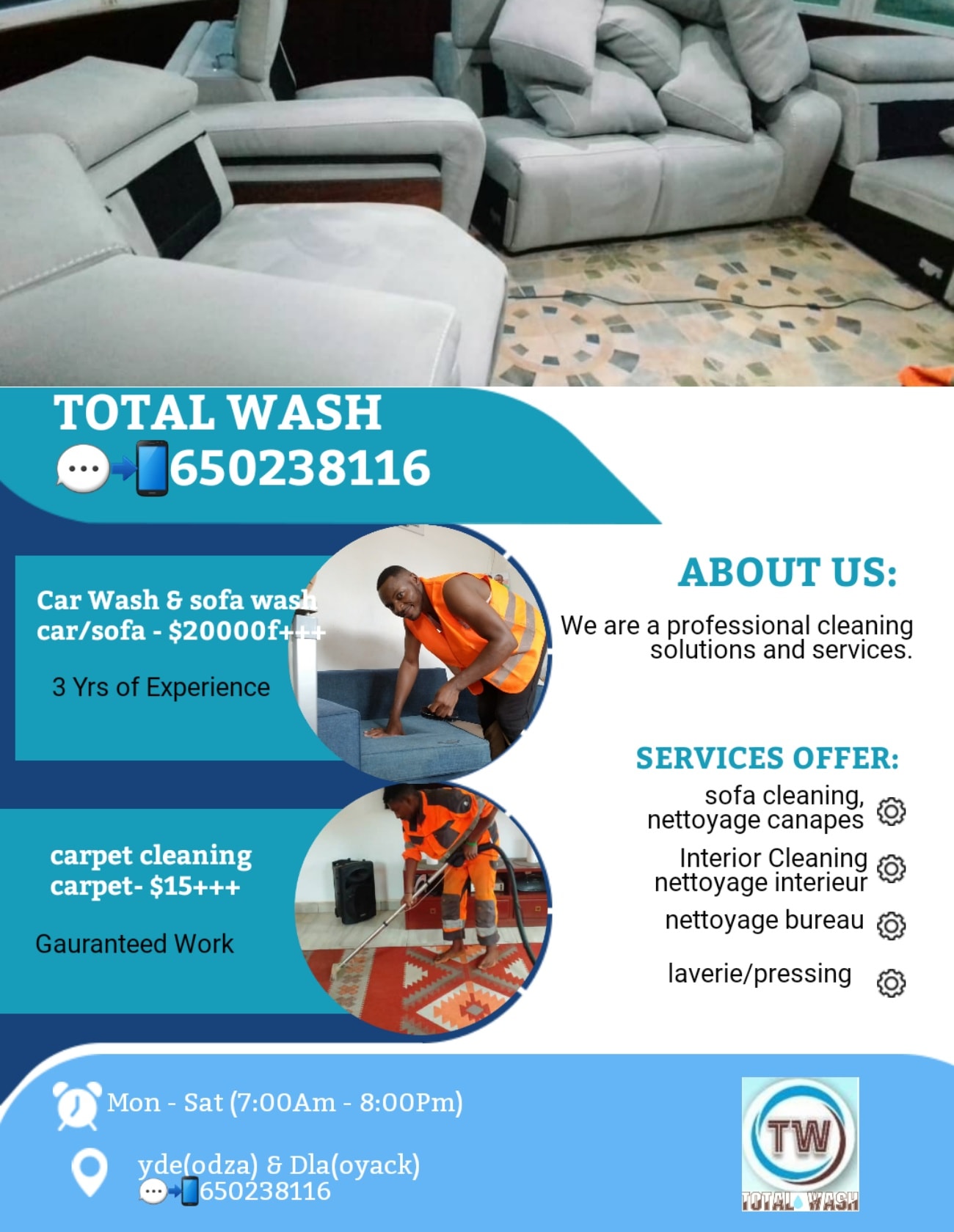 Total Wash est votre service de nettoyage à domicile. Nous vous proposons des services de nettoyage de meubles, nettoyage de canapés, nettoyage de bureaux, nettoyage de lustres et blanchisserie professionnelle.