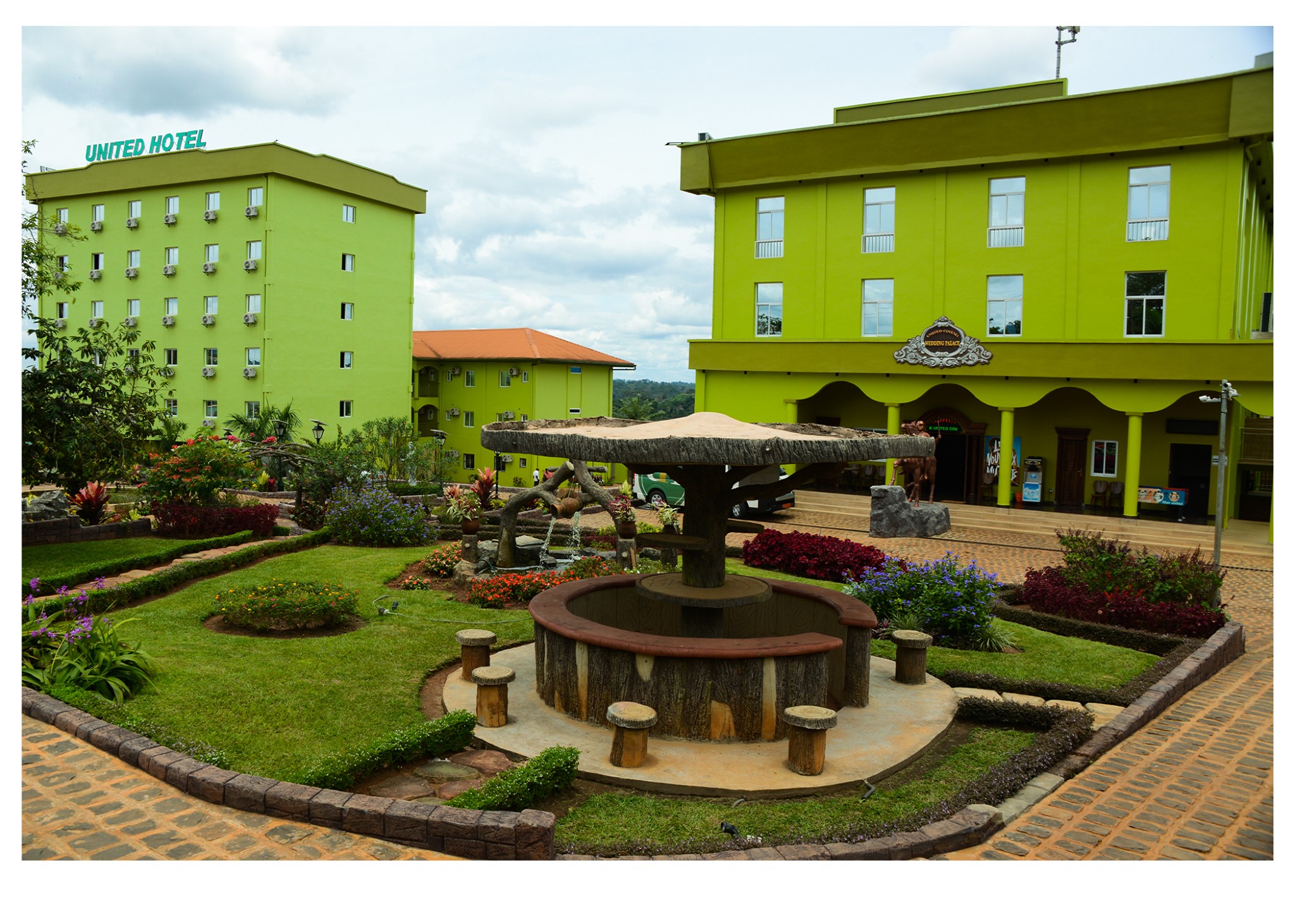 United hôtel est un complexe hôtelier, à la dimension internationale d’où le pesant d’or quatre étoiles. Construit sur une superficie d’environ 20 000 m2, il est situé dans les artères de la capitale politique, sur la route nationale no 03, reliant la capitale économique douala et la cité balnéaire Kribi, en plein centre administratif de Mbankomo, à 15min de l’aéroport de Nsimalen et 20 km du centre-ville de Yaoundé. United Hôtel de Mbankomo a une capacité de 80 chambres, réparties en quatre catégories qui sont les suivantes : chambres standard, chambres confort, chambres confort plus et des suites juniors. Toutes ces chambres sont équipées d’un matériel de dernières générations. Par ailleurs, le site regorgent une salle de cinéma 3D d’une capacité de 450 places assises au standard internationale, deux piscines, des salles de conférence et de banquets, un court de tennis, un mini manège pour enfant etc, véritablement un espace loisir digne de ce nom.
