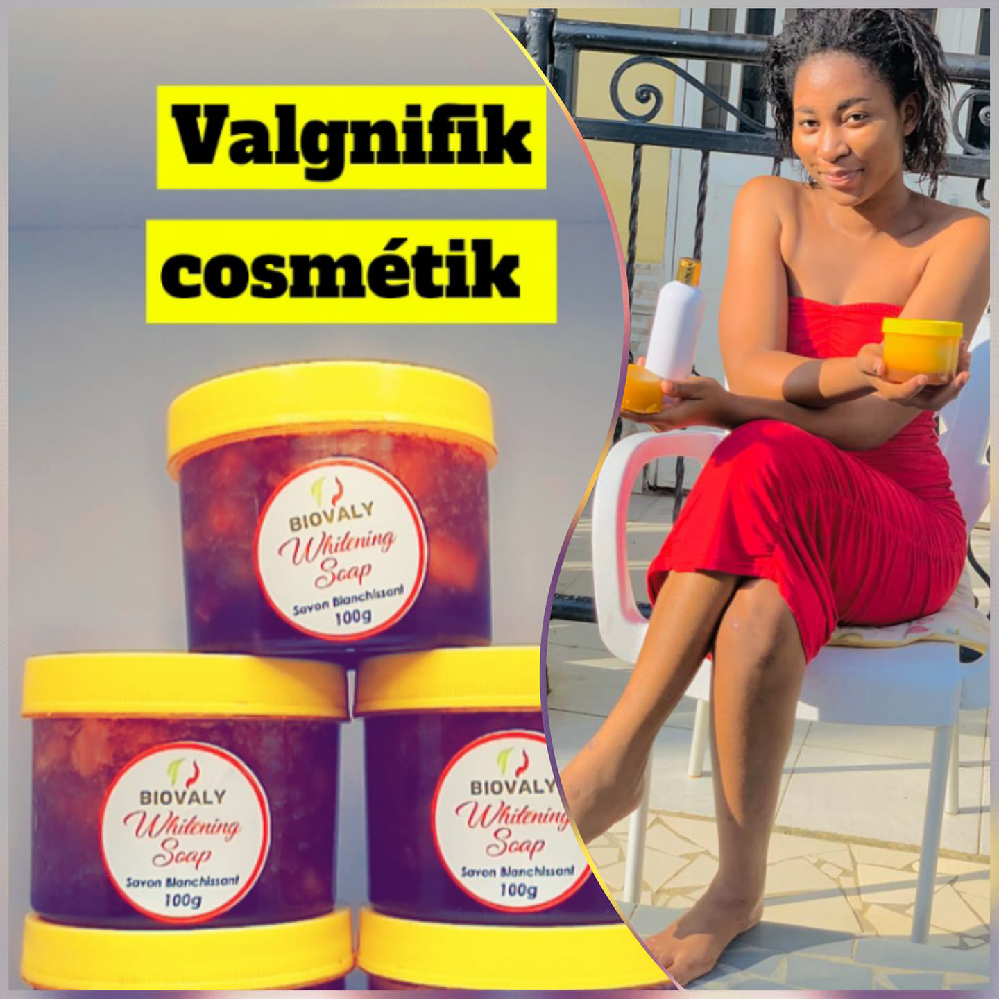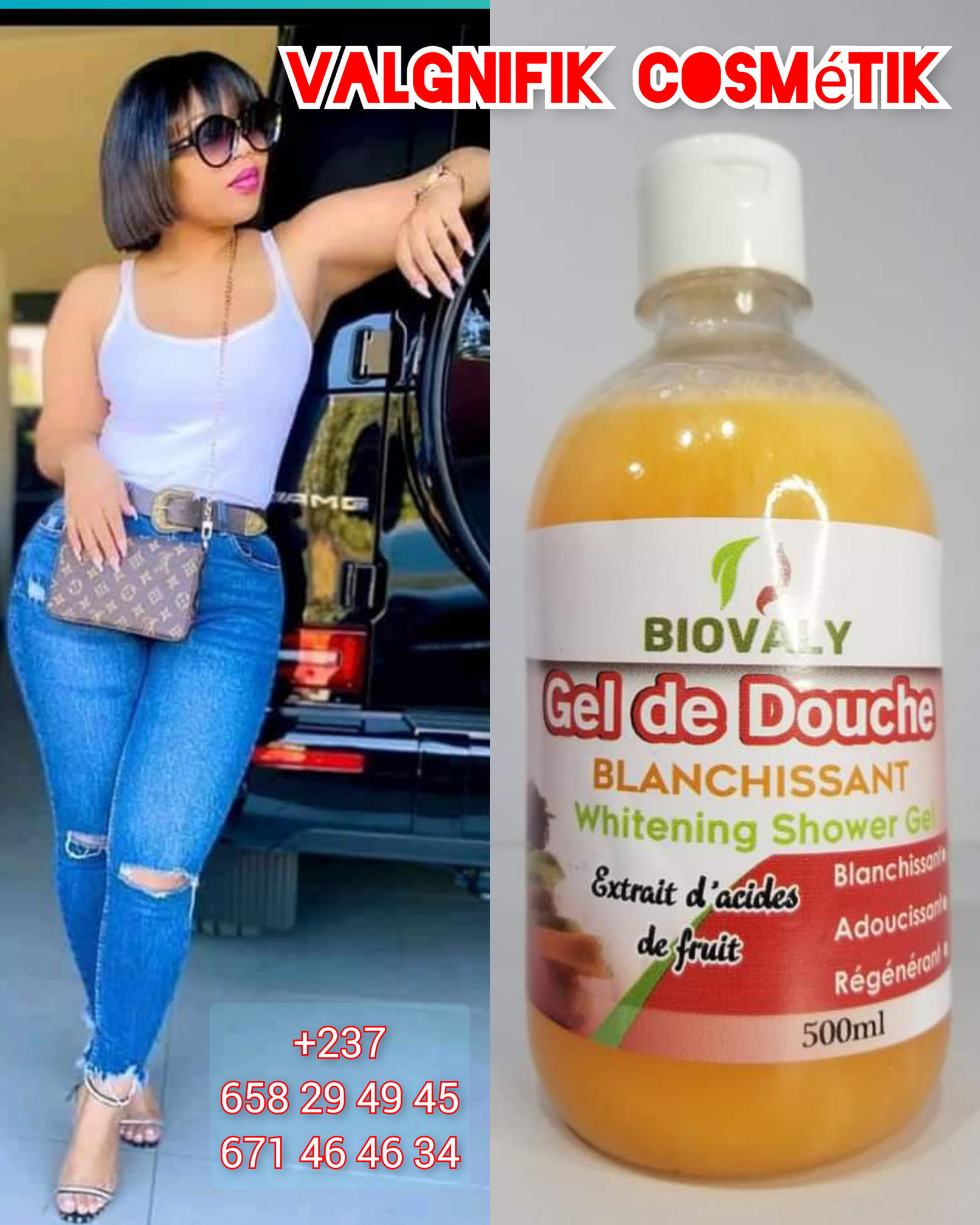 Valgnifik Cosmetik est une gamme de produits cosmétiques pour une peau parfaite et éclatante. Vous rêvez d’une peau plus claire et lumineuse, d’un épiderme unifié et net ? Essayez dès à présent notre gamme de beauté : Valgnifik Cosmetik. Elle couvre tous les besoins spécifiques de la peau qui se veut brune, noire qu'elle soit grasse, mixte ou sèche. Les actifs sélectionnés tels que : le collagène, la vitamine E, l'alpha arbutine, l'acide hyaluronique , fragrance et les composants naturels 100 % végétaux tels que l'huile d'argan et l'huile de jojoba, sont ainsi associés, selon leurs propriétés afin d'optimiser l'efficacité totale de cette gamme de beauté sur votre peau.