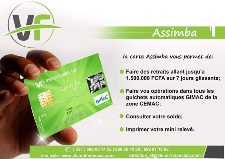 Vision Finance SA est un établissement de Micro finance de deuxième catégorie constitué en Société Anonyme avec Conseil d’Administration et au capital de 4.000.000.000 FCFA. Son Siège Social est situé à Yaoundé ; Elle compte à ce jour sept (07) agences situées dans les villes de Yaoundé et sa périphérie et Douala. L’honneur revient à Mr Jean Pierre Amougou Belinga son promoteur et Président du Conseil d’Administration de cette entreprise citoyenne qui a voulu poser les jalons d’un établissement financier capable de procurer un accompagnement technique et financier afin de permettre à sa clientèle de s’affirmer dignement. La responsabilité sociale de Vision Finance SA en tant que Etablissement de micro finance de 2ème catégorie repose sur sa mission fondamentale qui est celle directement et essentiellement définit par la contribution à l’inclusion financière des populations. Celle-ci est entendue comme une offre de services financiers répondant efficacement et effectivement aux besoins des différentes catégories de la population à un court restant compatible avec leurs capacités de le couvrir.