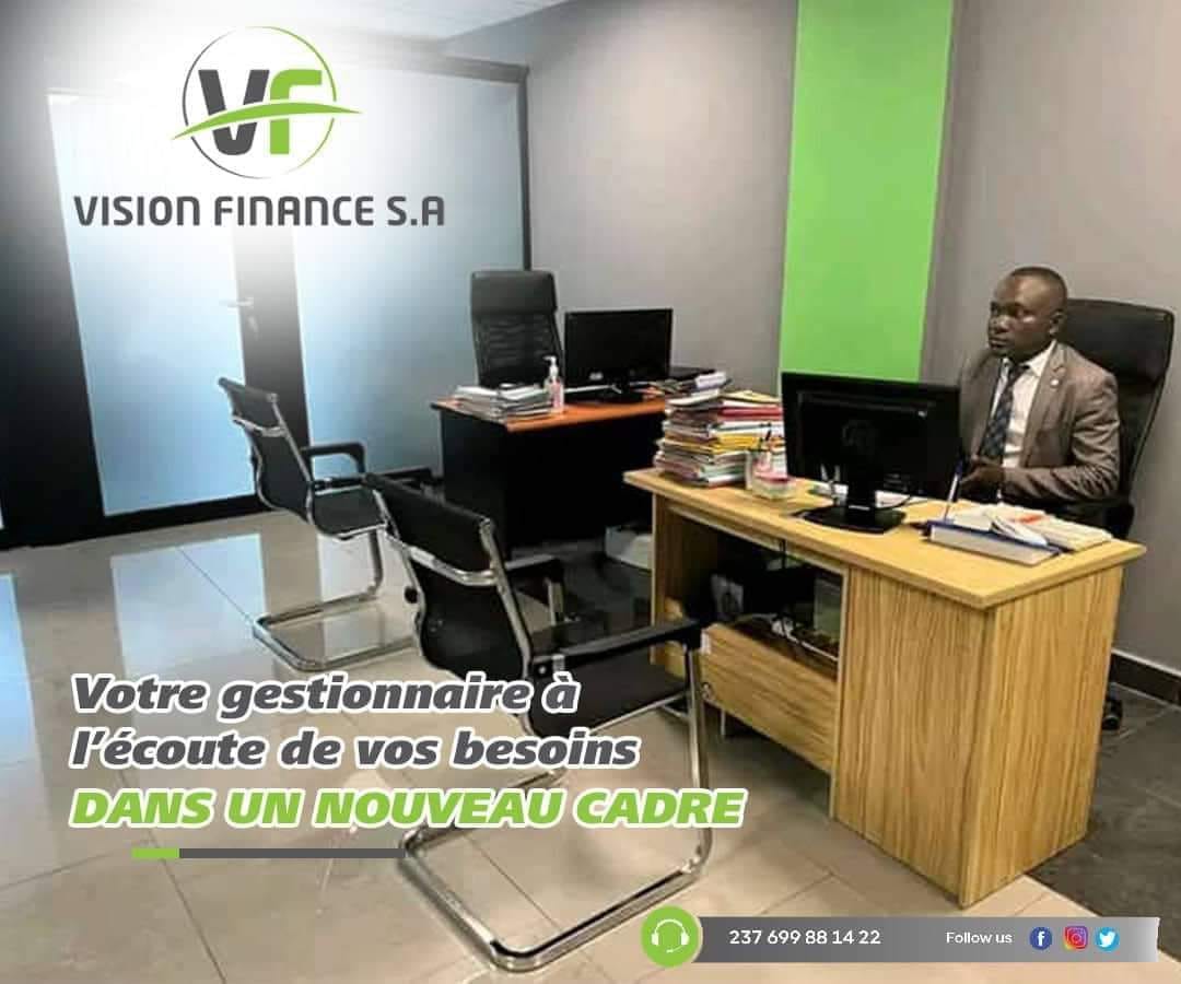 Vision Finance SA est un établissement de Micro finance de deuxième catégorie constitué en Société Anonyme avec Conseil d’Administration et au capital de 4.000.000.000 FCFA. Son Siège Social est situé à Yaoundé ; Elle compte à ce jour sept (07) agences situées dans les villes de Yaoundé et sa périphérie et Douala. L’honneur revient à Mr Jean Pierre Amougou Belinga son promoteur et Président du Conseil d’Administration de cette entreprise citoyenne qui a voulu poser les jalons d’un établissement financier capable de procurer un accompagnement technique et financier afin de permettre à sa clientèle de s’affirmer dignement. La responsabilité sociale de Vision Finance SA en tant que Etablissement de micro finance de 2ème catégorie repose sur sa mission fondamentale qui est celle directement et essentiellement définit par la contribution à l’inclusion financière des populations. Celle-ci est entendue comme une offre de services financiers répondant efficacement et effectivement aux besoins des différentes catégories de la population à un court restant compatible avec leurs capacités de le couvrir.
