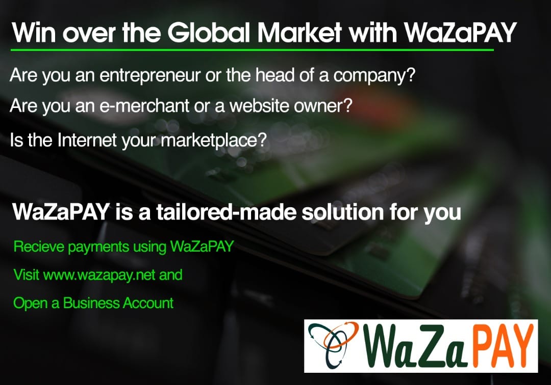 WaZaPAY est une application qui facilite les paiements en ligne grâce à la téléphonie mobile au Cameroun, qui s’étend en Afrique de l’Ouest pour toucher tout le monde en Afrique. Les transactions en ligne n'ont pas été une tâche facile en Afrique en général. La plupart des utilisateurs en ligne ne peuvent pas acheter en ligne librement. WaZaPAY est le moyen pour les utilisateurs d’internet en Afrique d’avoir accès à leurs fonds locaux en ligne en utilisant leurs téléphones mobiles, connus sous le nom de Mobile Money.