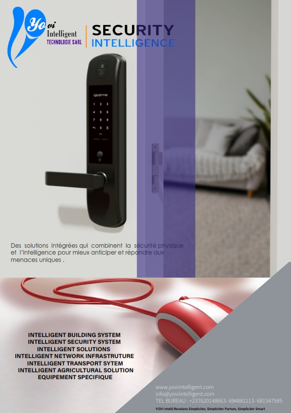 YOVI IT SARL Est une Pme Camerounaise situé à Yaoundé Cameroun au immatriculée au RC/YAE/2019/B/1105 Est axé dans l’ingénierie, Audit - Etude - Ingénierie -Certification & Informations. Nous proposons des solutions intelligentes en système de sécurité, des solutions d'intégration dans, le bâtiment (IBS), le transport (ITS), les architectures réseaux de télécommunication Intelligentes, des infrastructures réseaux informatiques, les solutions d’infogérance, la maintenance et l’installation des équipements électroniques Industrielle et pour le grand public. YOVI INTELLIGENT TECHNOLOGIE, vous apportes une Expertise et des solutions, vous garantissant la qualité du service, dans une possibilité illimitée à travers son réseau des partenaires locaux et internationaux. Pour tous vos besoins en Matériel de Sécurité, Composants électroniques, Automatismes, et Pneumatiques, Energie Renouvelables. YOVI INTELLIGENT TECHNOLOGIE. Développe et intègre des applications informatiques et des solutions intelligentes pour la gestion et la protection des personnes, des biens, et des données les plus complètent dans ; la sécurité, l’éducation, la santé, l’administration, l’industrie que dans le domaine du flux transactionnel et financière.