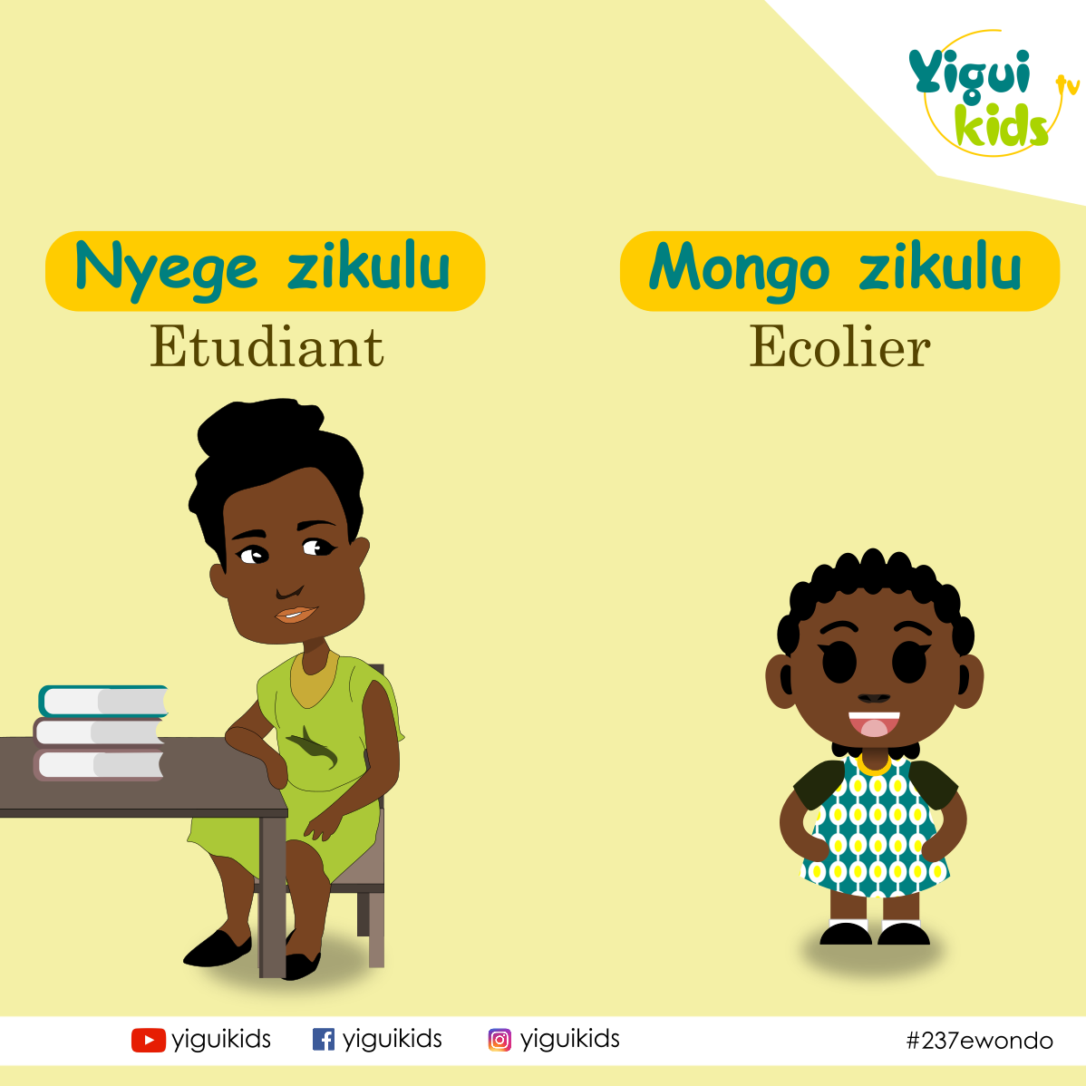Yigui Kids est un projet dédié à l'éducation des petits et grands, à la sauvegarde des langues du Cameroun, notamment les langues Béti (Fang), Douala, Bassa. Yigui Kids permet d’apprendre à lire et écrire, compter et chanter dans nos langues du Cameroun ; apprendre les bases sur les mathématiques en français et en anglais, en suivant le programme scolaire de la maternelle au primaire. Nous proposons des contenus textes, vidéos et des jeux pour apprendre en s’amusant, parler du monde moderne avec nos langues afin de les ancrer. Yigui Kids est un projet incubé par l'association camerounaise WUSU.